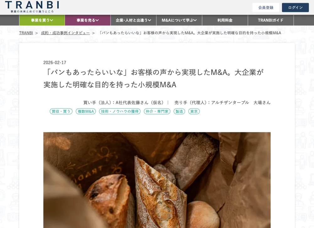 M&AプラットフォームTRANBIに